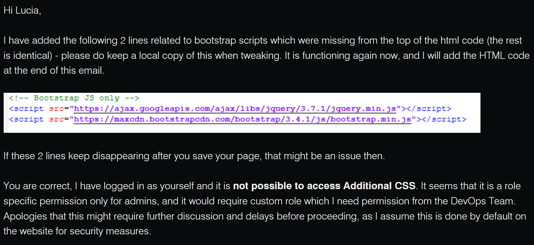 After I’d save, the site would automatically strip the page with anything that I’d authored and wasn’t allowed to do – ofc because I’d edit the HTML block, this meant that it ‘authored’ it.